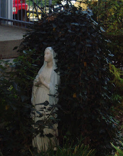 I found this lovely little Mary in a Grotto figurine in the Hampden neighborhood, also. She was on the shelves of a store called Junque, which sells just that...but in the nicest possible way. They sell a lot of other vintage Catholic trinkets, and it made me want to start a museum of Catholic Ceramics.