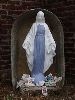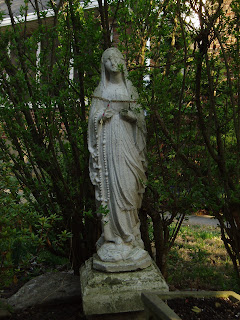 I've been looking for a new house recently, and in one of the neighborhoods I looked at, I noticed a ton of Mary statues. None were in bathtubs or grottoes, which was kind of disappointing, but I did get some beautiful spring pictures of Our Lady of the Front Yard.