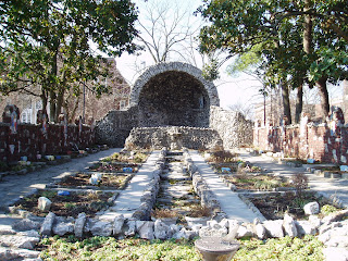 This is a replica of the shrine in Lourdes, France. When it was built, it stood near a hospital. Now it stands between university apartments, and a gym used by UofL. I can just imagine college students hanging out in the grotto drinking bottles of Smirnoff and cans of Bud Light.